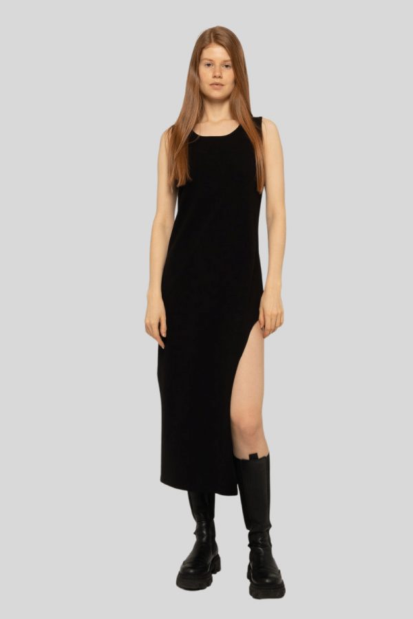Чем разбавить: оригинальными массивными аксессуарами, тёмные колготки или лосины. Идеальное сочетание – кожаная куртка и грубые ботинки с нетипичной платформой.